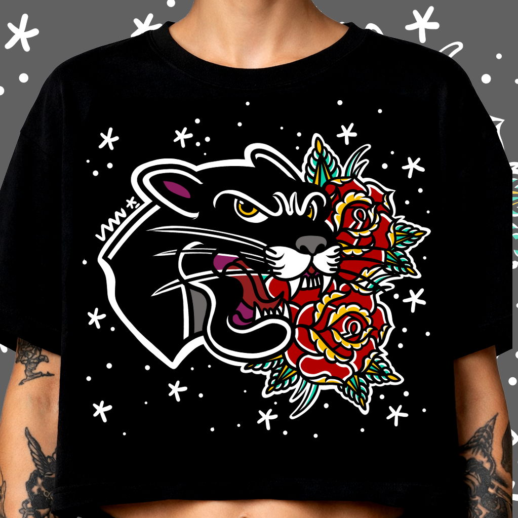 ⚡️PANTERA Y ROSAS⚡️(CROPTOP MODELO OVERSIZE)